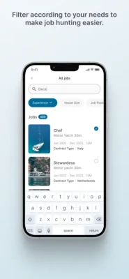 Navigate through a sea of opportunities with our advanced filtering options. Tailor your search based on specific criteria, ensuring you find the perfect match for your yacht crew or the ideal job that aligns with your career goals.