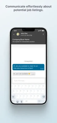Experience a direct line of communication with shortlisted candidates through our in-app messaging feature. Connect effortlessly, discuss opportunities, and build meaningful connections within the yachting industry.