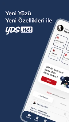 1. YDS.NET uygulaması YDS, E-YDS, YÖKDİL, E-YÖKDİL, YDT gibi ulusal sınavlar, IELTS, TOEFL gibi uluslararası sınavlar ve günlük yaşamda ihtiyaçlarınıza cevap verecek olan GENEL İNGİLİZCE gruplarının yer aldığı bir platformdur.