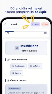 🚀 🗂️ Kategorize Edilmiş Kartlar: Sıfatlar, fiiller, zarflar gibi temel kategorilere ayrılmış yüzlerce kelime kartı ile çalışmalarınızı düzenli bir şekilde ilerletin. YÖKDİL kelime ezberleme için aradığınız tüm kelimeler parmaklarınızın ucunda.