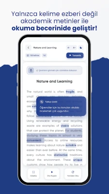 👓 Özel Okuma Parçaları: Her karta özel olarak hazırlanan okuma parçaları ile öğrendiğiniz kelimeleri metin içinde görün. Okuma parçalarının Türkçe çevirilerine de anında ulaşarak okuma ve anlama becerilerinizi (reading skill) geliştirin. Tıp Dil kelime ezberleme ve AGS kelime ezberleme için akademik metinlere aşinalık kazanın.