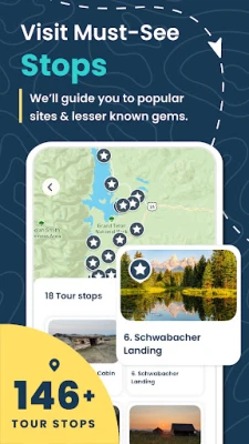Find a complete list of stops for the Yellowstone tour and Grand Teton audio tour in the app!