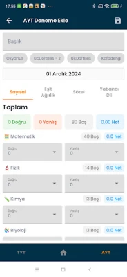 📈 Ortalama Net Analizi: TYT ve AYT deneme netlerinizi karşılaştırarak genel performansınızı değerlendirin. Bu analiz, hangi konulara daha fazla odaklanmanız gerektiğini belirlemenize yardımcı olacaktır.