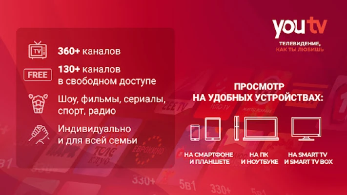 youtv – Ukrainian online TV for Android TV, 200+ free channels, EPG / EPG, 40+ free radio channels, easy to try 400+ channels (250+ HD), put and watch right away!