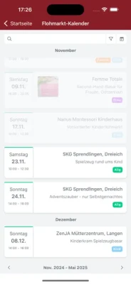 Die App listet auch alle Flohmärkte in der Region auf, so dass begeisterte Schnäppchenjäger*innen künftig immer alle Termine dabei haben und keine Liste mehr veraltet.