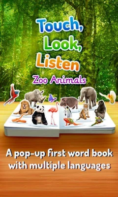 Zoo Animals is just like a real book, so it's easy to find your way around. Each page is introduced by a playful rhyme, while bright and colorful images pop-up magically as each 3D scene opens. When your child taps a picture, they see and hear the associated word, making this a powerful tool for learning new words as well as reinforcing those they already know. With the second language option, they can explore other languages too, including Spanish, Chinese, French and German.