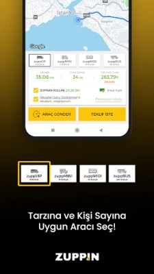 1-54 yolcu kapasiteli tüm araçlara TALEP GÖNDERİP TEKLİF ALABİLİRSİNİZ. Teklif aldıktan sonra istediğiniz yere Zuppin özel araçlarıyla anında ulaşabilirsiniz.